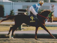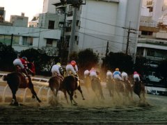 スタート。中段待機?知っての通り、川崎競馬場は左回りである。1コーナーを回るミヤシロブルボンは明らかに外へ外へと膨れている。鞍上菅原騎手が手こずっているのが良く分かる。最終コーナーを回ってなお中段のまま。直線では見せ場もなく後方に置かれてしまった。結果はアグネスワールドの圧倒的勝利。さすがは良血、器が違った。ミヤシロブルボンは2.0秒差の9着。初めての大敗を喫してしまった。引き揚げて来た菅原騎手も寂しそう。声をかけるのもはばかられた。でも、馬寄せに返ってくるのはミヤシロブルボンが一番であった。ほんとに新井さんの馬はレースの後馬寄せに帰ってくるのが早い。馬は正直だ。特に新井さんの馬はみなレース後に馬寄せに帰ってくるのが速い。ホント。