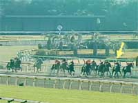 東京ダート1200mは向こう正面中間あたりからスタート。スタンド1階からは見えない。ターフビジョンで見ているしかない。レーススタート。勢い良く跳び出したのは3ウエスタンマリン、4ツルガオカマツリ。1番人気の1ロマネスクキコウは1完歩立ち後れるも、直ぐに前に追いつく。外からは、これに並びかけようと14マチカネホノオ、10サテライトサンが出てくる。